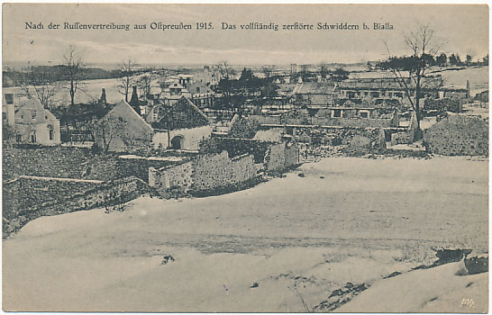 Pocztówka Świdry k. Biała Piska postkarte Schwiddern b. Bialla, Russen zerstörtes Dorf postcard Świdry k.Bialla  postkarte Ostpreußen postkarte Ostpreussen Ostpr.pocztówki Prusy Wschodnie