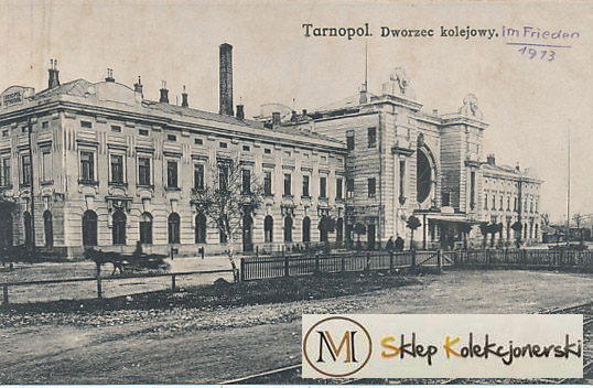 Pocztówka Tarnopol dworzec kolejowy, postkarte Ternopil, postcard Ternopil, открытка Тернопіль, postkarte Ternopil Bahnhof, postcard Ternopil railway station, открытка Тернопіль вокзал, pocztówki dworce kolejowe, pocztówki Kresy wschodnie, pocztówki z kresów, Kresy na starych pocztówkach