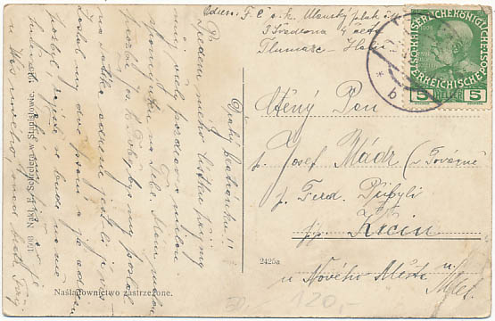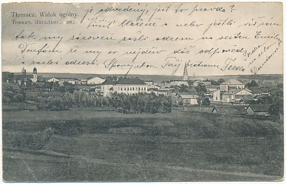 Zgięty dolny róg. Pocztówka Tłumacz Widok ogólny postkarte Tlumatsch postcard Tlumach открытка Тлумач z obiegu 1914r pocztówki Kresy wschodnie pocztówki z kresów Kresy na starych pocztówkach