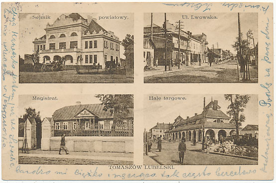 Pocztówka Tomaszów Lubelski cztery widoki postkarte Tomashiv postcard Tomashiv открытка Томашув-Любельский Томашів