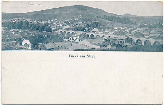 Pocztówka Turka widok ogólny postkarte Turka am Stryj postcard Turka открытка Турка z obiegu 1917r pocztówki Kresy wschodnie pocztówki z kresów Kresy na starych pocztówkach