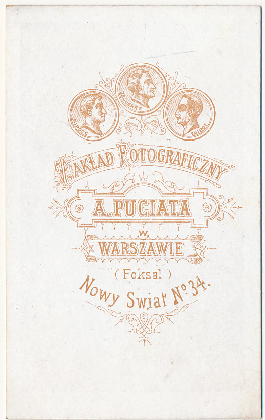 Warszawa Foto. A.PUCIATA ok.1880r kartonik tekturka CDV
