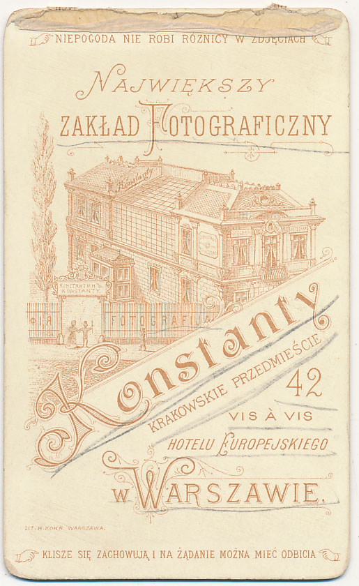 Stara fotografia kartonikowa Warszawa Foto Konstanty format wizytowy CDV wym. 10,5 x 6,5 cm fotografia na tekturce, stare fotografie, CDV