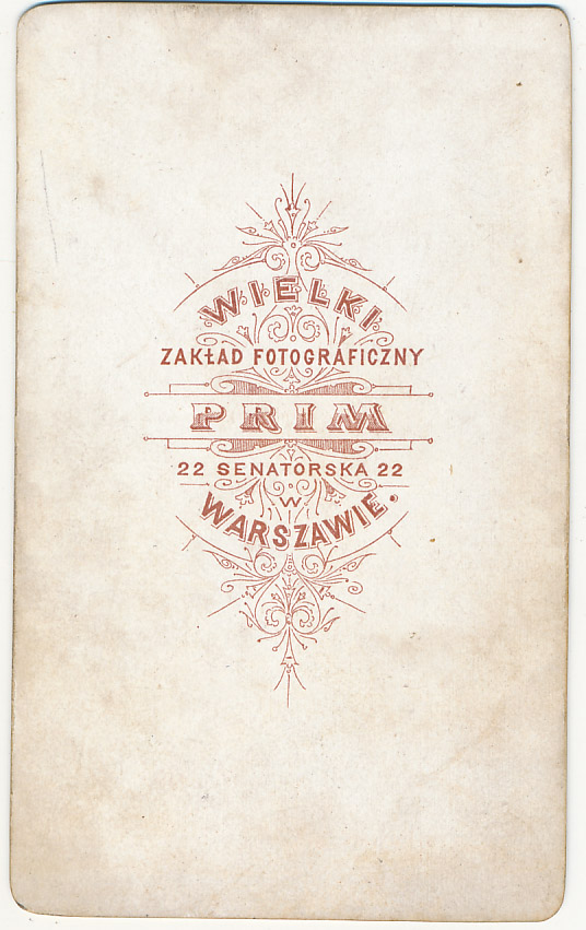Warszawa Foto. PRIM około 1875r kartonik tekturka CDV