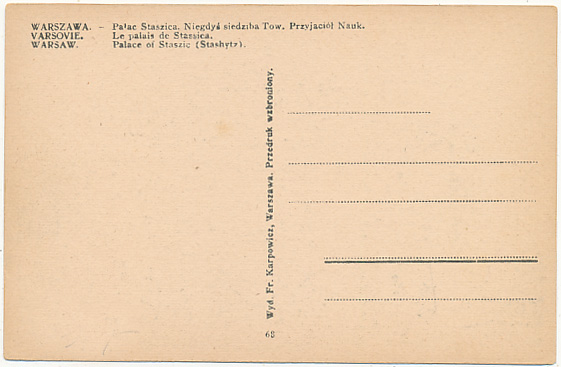 Warszawa Pałac Staszica wyd. Karpowicza nr. 68