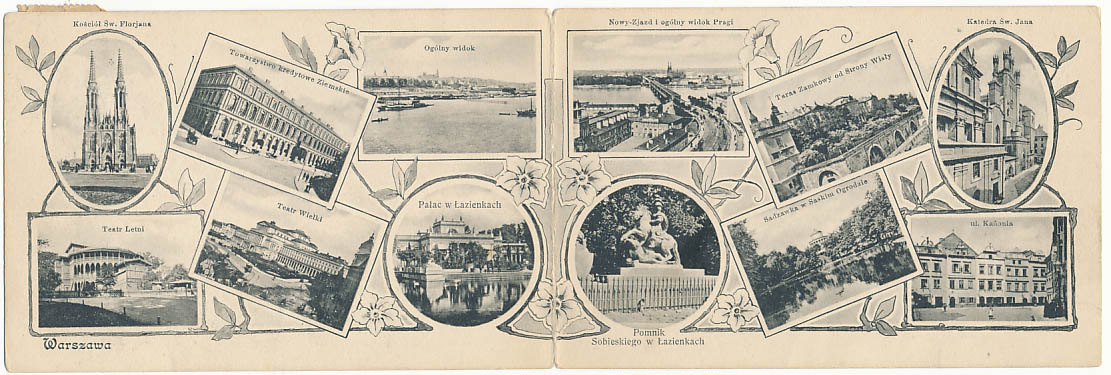 Pocztówka Warszawa secesja kilka widoków postkarte Warschau postcard Warsaw открытка Варшава z obiegu 1915r pocztówki secesyjne Warszawa na starych pocztówkach pocztówki starej Warszawy pocztówki z dawnej Warszawy