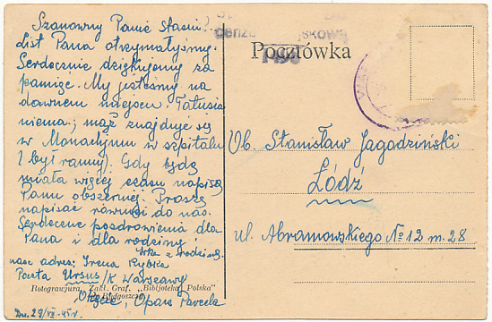 Cenzura sowiecka 1945r. Pocztówka Warszawa, postkarte Warschau, postcard Warsaw, открытка Варшава, Warszawa na starych pocztówkach, pocztówki starej Warszawy, pocztówki z dawnej Warszawy.