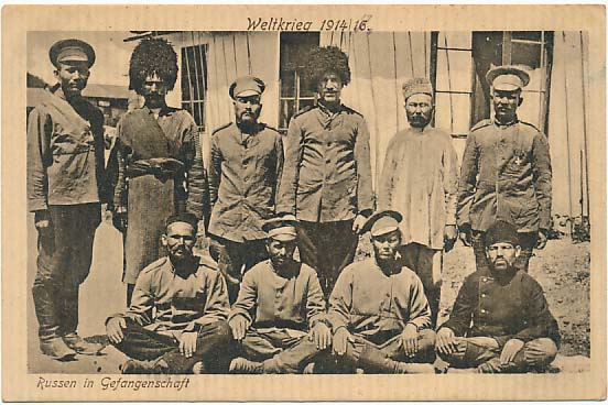 Pocztówka Rosjanie w niewoli postkarte Russen in Gefangenschaft postcard Russians in captivity открытка Русские в плену z obiegu Feldpost 1917r stempel formacyjny