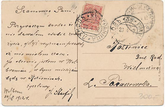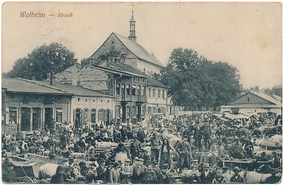 Pocztówka Wolbrom Rynek postkarte Wohlborn postcard Wolbrom открытка Вольбром z obiegu 1912r stempel ambulansu pocztowego ambulans pocztowy wagon pocztowy