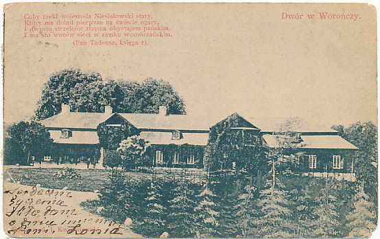 Słabszy stan. Pocztówka Worończa Dwór postkarte Woroncza weißrussisch postcard Voroncha Belarusian открытка Варонча pocztówka długi adres pocztówki Kresy wschodnie pocztówki z kresów Kresy na starych pocztówkach postkarte Weissrussland postcard Belarus открытка Белоруссия