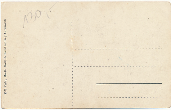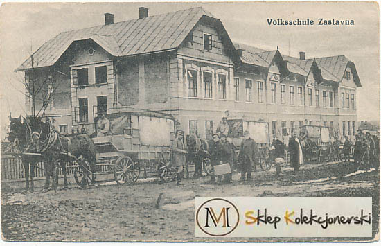 Zgięty róg. Pocztówka Zastawna Szkoła, postkarte Sastawna, postcard Zastavna, открытка Заставна, pocztówki Kresy Wschodnie, pocztówki z kresów, Kresy na starych pocztówkach